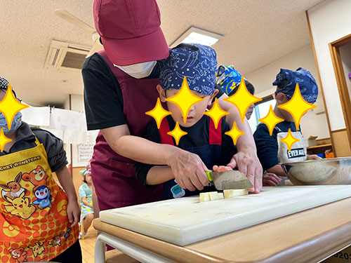 年長さんはさつまいもを包丁で切るのに挑戦✨