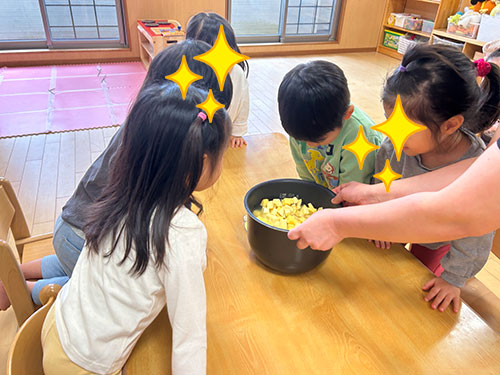 10月に保育園の畑でみんなで収穫したさつまいもを使って、幼児クラスで「さつまいもおにぎり作り」をしました🍙